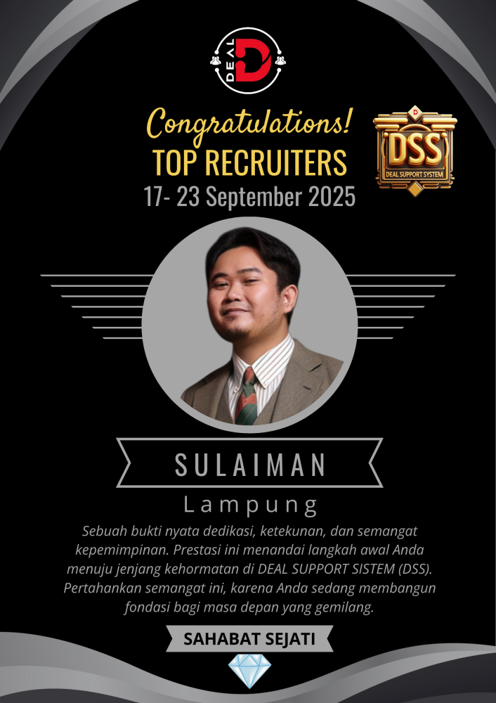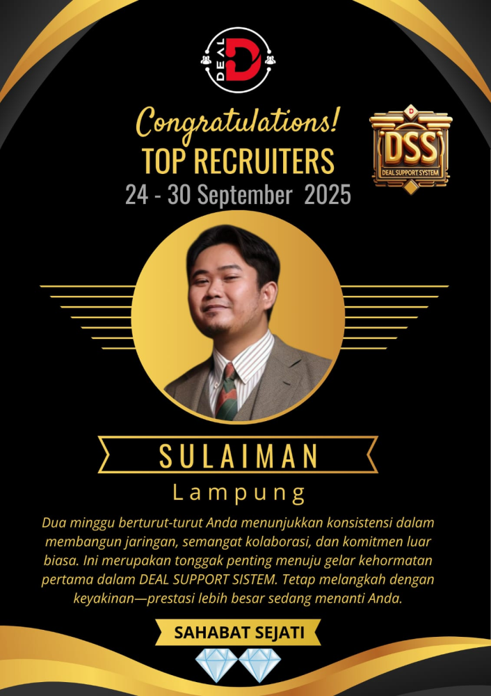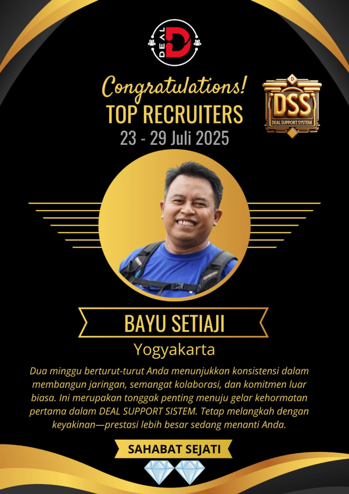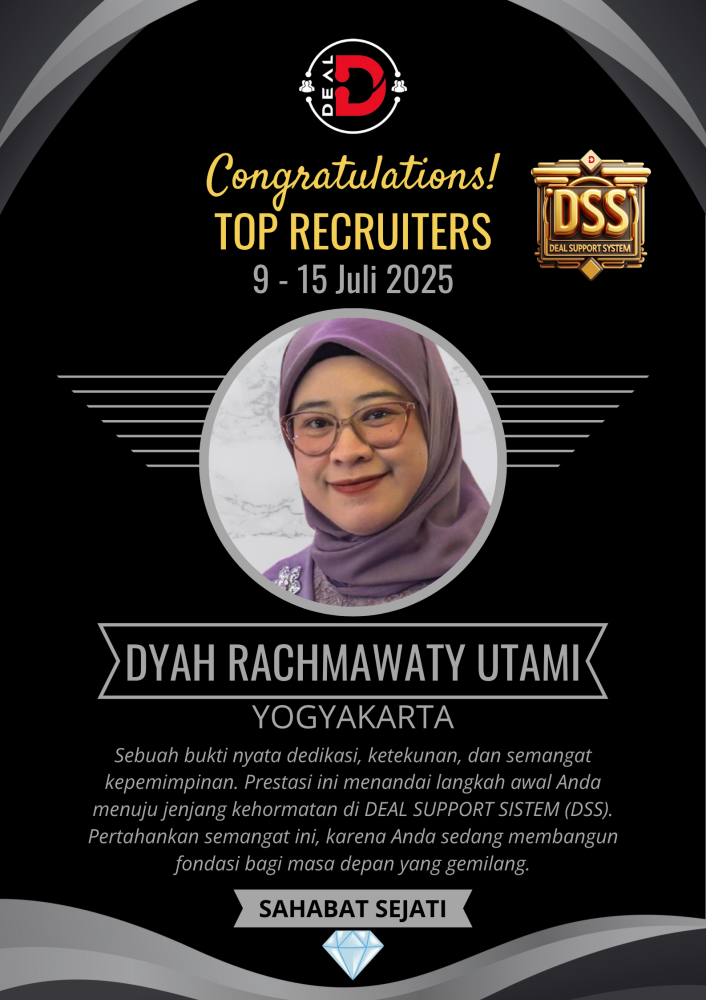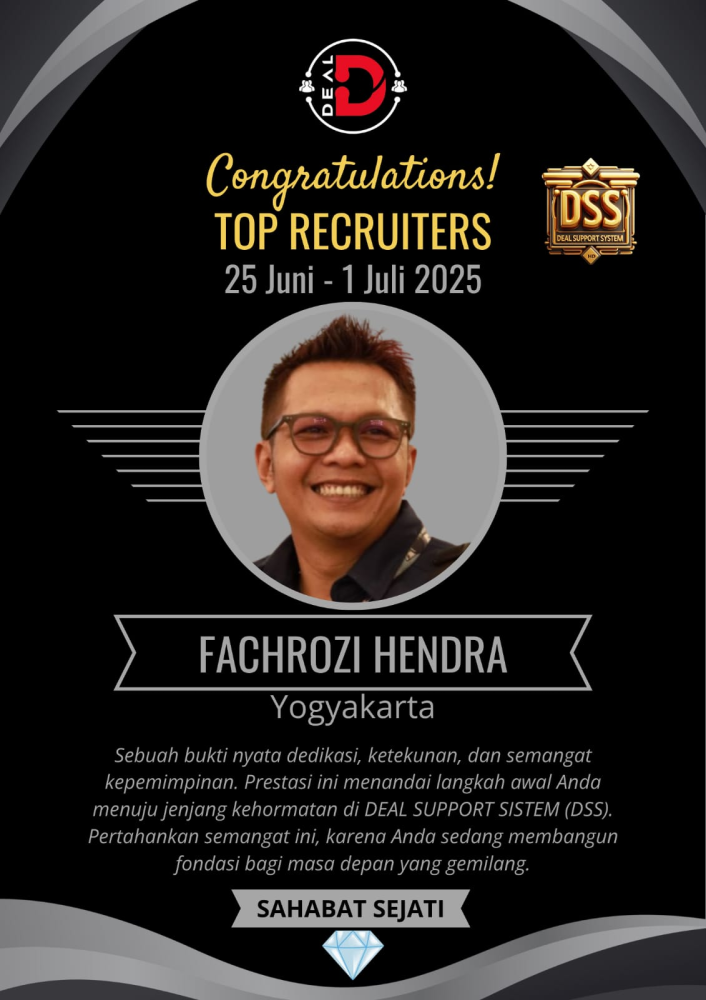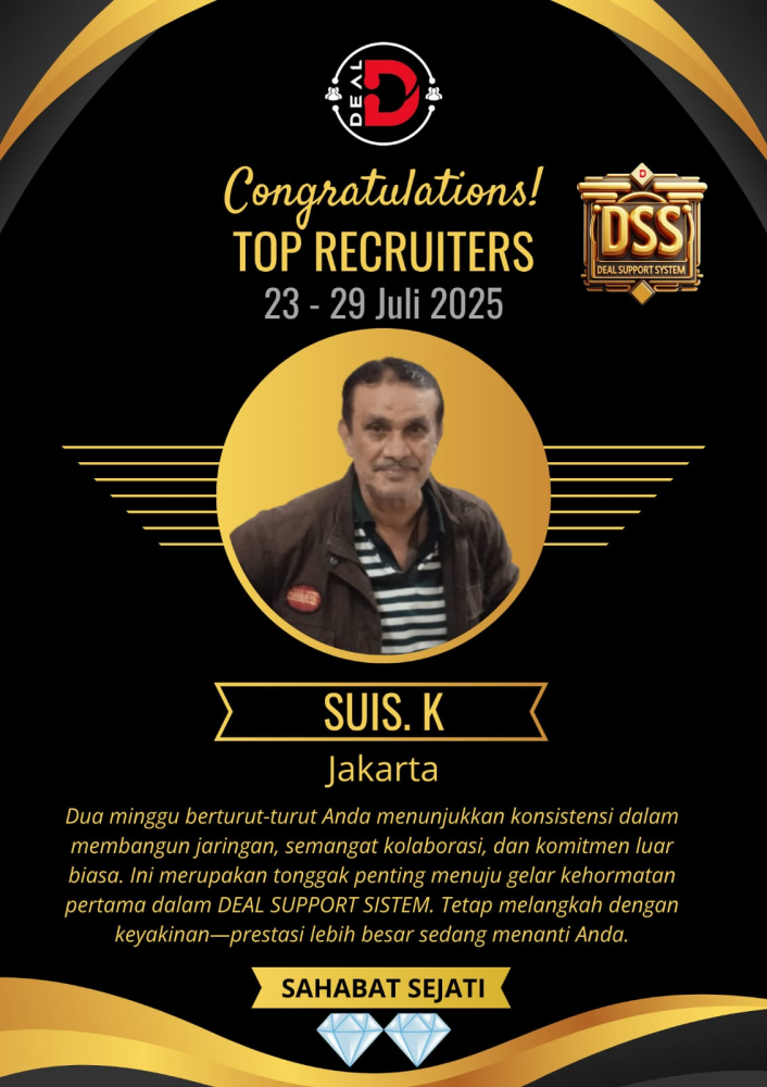 Adalah Sahabat Niaga yang telah mencapai standar kualifikasi yang telah di tetapkan oleh DEAL SUPPORT SYSTEM, selama satu minggu, sehingga diberikan penghargaan berupa gelar DIAMOND
