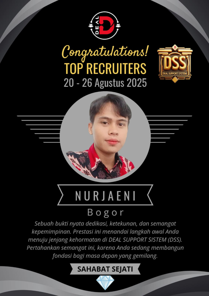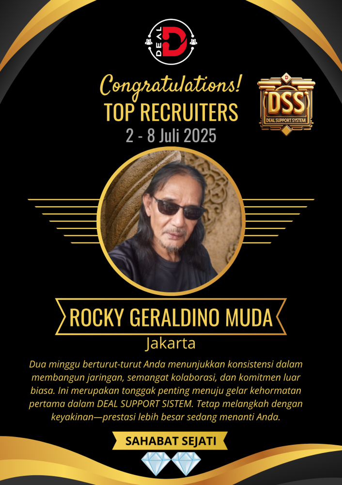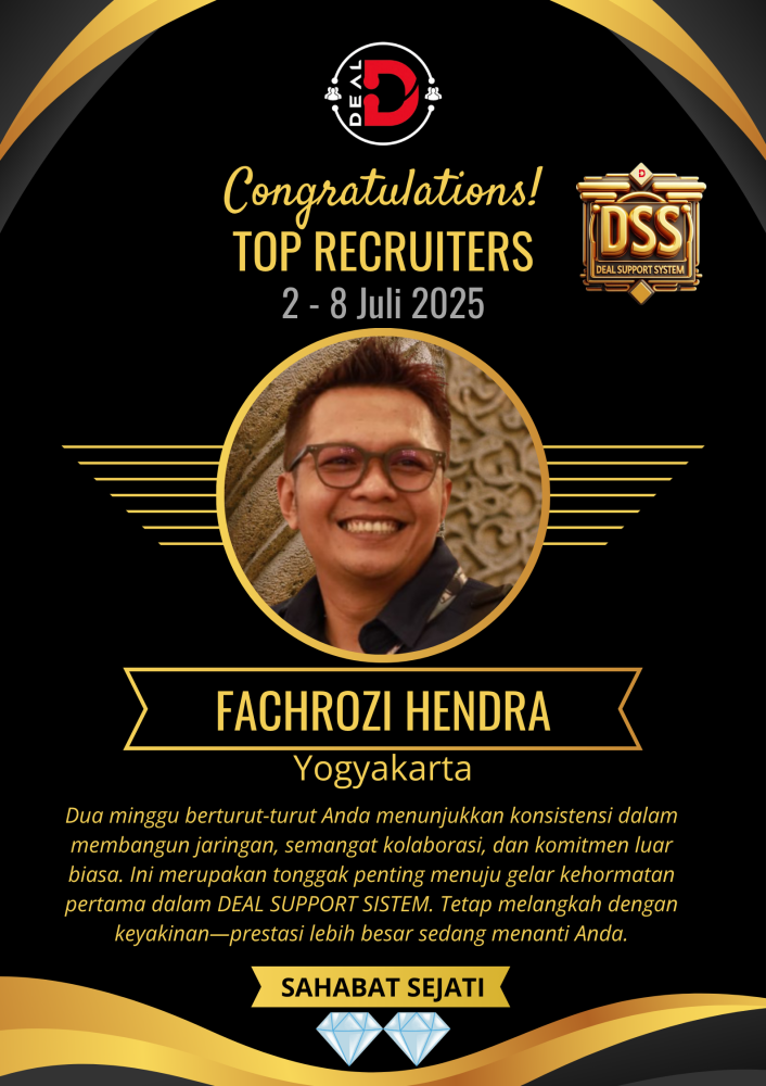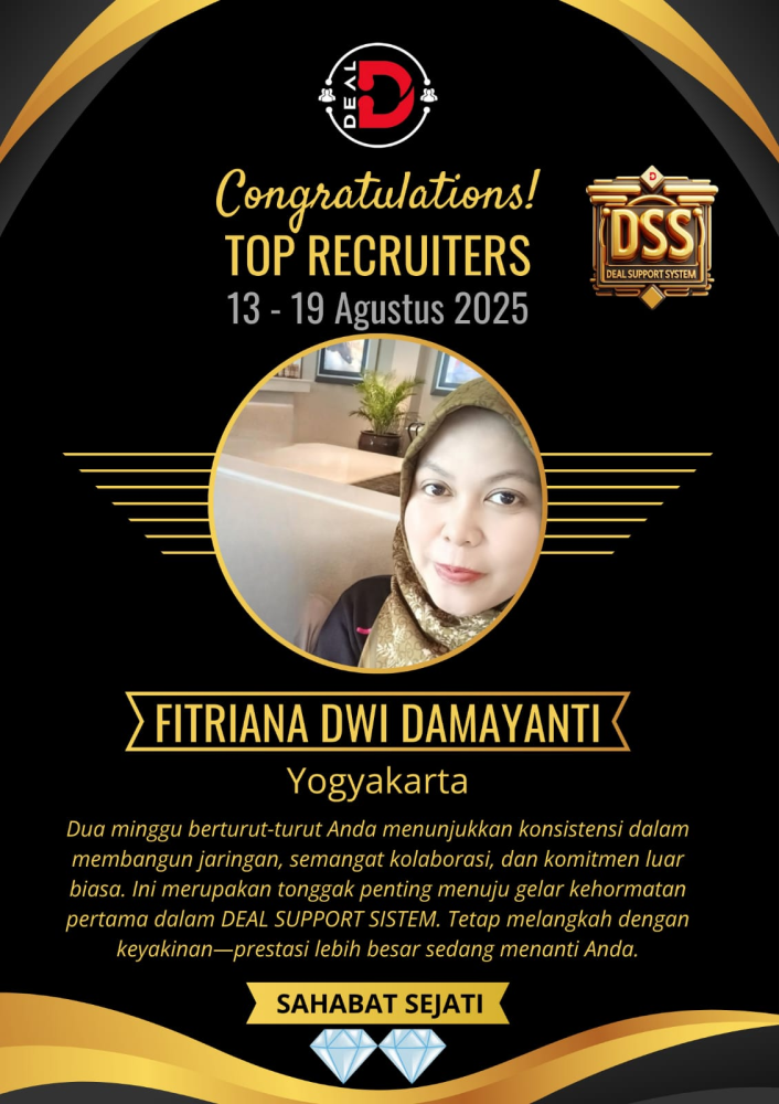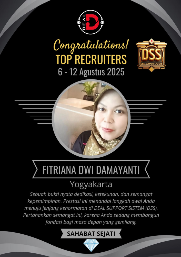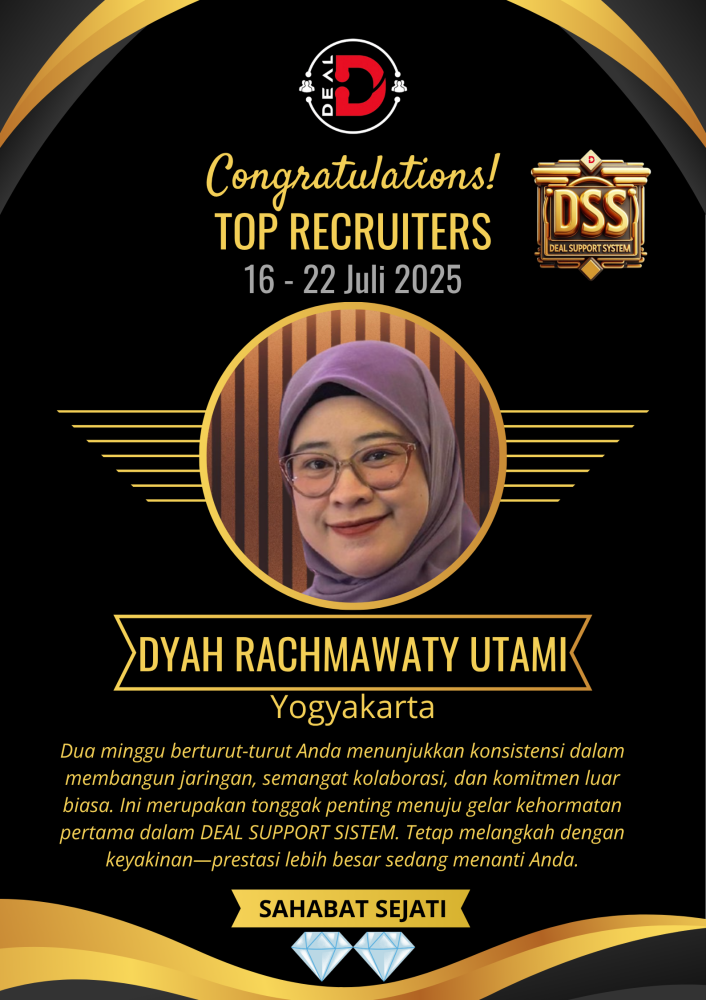 Adalah Sahabat Niaga yang telah mencapai standar kualifikasi yang telah di tetapkan oleh DEAL SUPPORT SYSTEM, selama satu minggu, sehingga diberikan penghargaan berupa gelar DIAMOND